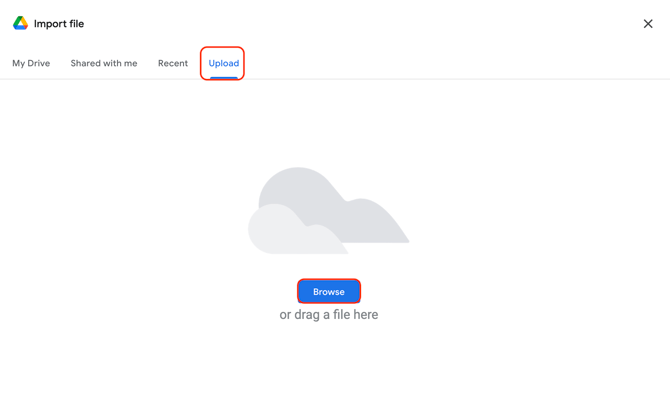 Click File > Import at the top left. In the window, go to the Upload tab.