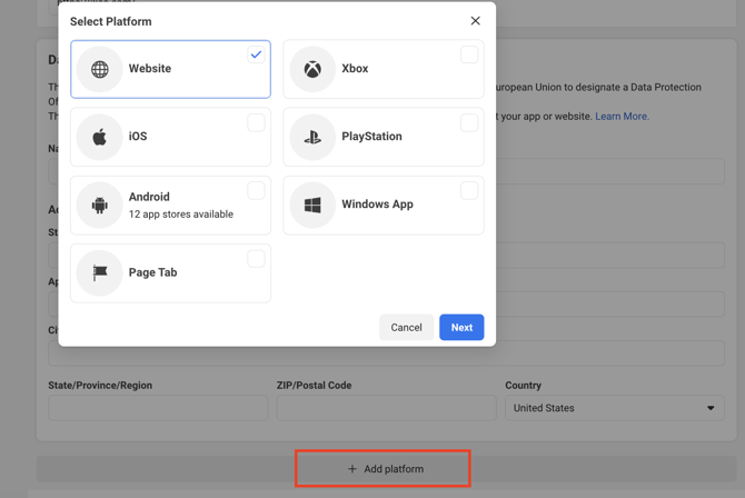 Aynı ekranda sayfayı aşağı kaydırın ve +Add platform butonuna tıklayın. Platform olarak ise website işaretleyin ve sitenizin adresini ekleyin.