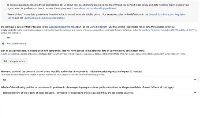 İlgili özelliğin çalışabilmesi için developers.facebook.com tarafında Review>App Review alanından bir App Review Request yapmanız gerekmektedir. Burada direkt olarak bir taslak (draft) bulunuyor olup Edit alanından devam edebilirsiniz.